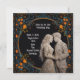 Invitation de mariage personnalisée Marié et Mariée sur fond noir avec doré et une bordure de fleurs.