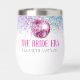 Célébrez avec ces tendances paillettes boule disco "ère de la mariée" enterrement de vie de jeune fille ou douche de mariage tasse à vin thermique! Personnalisez avec vos propres détails.