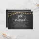 Mariés, Faire-part / Invitation de Mariage Intime, sur un tableau noir de ferme rustique, avec des guirlandes lumineuses. C'est parfait pour votre réception de mariage et la fête de célébration après le mariage. Ajoutez vos détails dans la même police / lettrage.