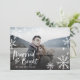 Faites une déclaration époustouflante cette saison des fêtes avec cette carte de vœux de vacances élégante avec une photo pleine page qui dit "Married and Bright" ; et présentant des flocons de neige à texture aquarelle et une typographie avec un aspect brossé authentique. Le verso de la carte présente un motif de neige qui tombe avec la même texture. Ajoutez votre propre texte personnalisé au verso de la carte ou supprimez-le simplement. Parfait pour que les jeunes mariés l'utilisent comme annonce de mariage ou carte de remerciement pendant les fêtes. Visitez notre boutique en ligne pour plus de pièces dans ce design !