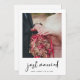 Vous avez décidé de vous enfuir? Vous voulez annoncer que vous venez de vous marier ? Partagez la nouvelle de votre mariage avec cette belle carte de photo de mariage, police et couleurs entièrement personnalisables.