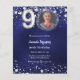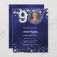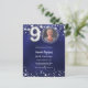 Une invitation photo moderne et design pour une fête du 90e anniversaire. Arrière - plan bleu marine, décoré d'étoiles. La couleur bleue est inégale. Personnalisez et ajoutez vos photos et détails de fête. 1 feuille = 1 invite imprimé bord à bord.