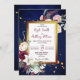 Lys blancs rose de Bourgogne sauge verdure bleu marine arrière - plan or géométrique cadre modèle floral faire-part de mariage avec code QR RSVP à l'arrière.