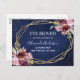 Marine Bleu Bourgogne Floral Moving Faire-part