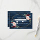 Cartes RSVP Mariage campagnard rose bleu bleu marine ou arrière - plan à grains de bois, décorées d'un cadre géométrique imprimé en or et orné d'éléments floraux et verts dans des tons marine, rose, bordeaux et plus. Affichez la collection correspondante sur cette page pour rechercher des éléments de coordination.