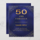 Un arrière - plan bleu marine, de couleur inégale. Décoré de coins dorés. Personnalisez et ajoutez un nom et des détails du parti. 1 feuille = 1 invite imprimé bord à bord.