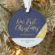 Célébrez la saison avec cet élégant ornement photo de Noël. Ce design est orné de lettres dorées modernes "Notre premier Noël" avec blocs de couleurs géométriques (Marine, Bleu clair). Vous pouvez ajouter votre photo et personnaliser le texte. Plus de cadeaux de vacances et de cartes sont disponibles dans ma boutique BaraBomDesign.