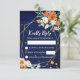 Roses orange et blanc sauge eucalyptus vert marine bleu arrière - plan or géométrique cadre de mariage floral RSVP carte QR code RSVP à l'arrière - si pas nécessaire - juste supprimer ces champs de la zone de texte.