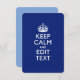 Votre Gardez le calme personnalisé dans un décor bleu marine audacieux. Un style personnalisé Keep Calm en disant sur un cadeau de nature. Essayez humour ou fantaisie sur vos mots créatifs sur deux lignes de texte modifiables. N'oubliez pas d'utiliser les lettres CAPITAL pour obtenir les meilleurs résultats. Utilisez le lien "Demandez à ce concepteur" pour nous contacter avec vos demandes de design spécial ou pour obtenir de l'aide sur vos besoins de personnalisation.