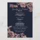 Marine Blue et Rose Gold Floral Mariage Menu