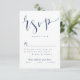 Script RSVP écrit à la main en bleu marine et blanc, élégant et élégant, grande moderne simple carte de mariage personnalisée RSVP. Voir toutes les pièces correspondantes dans la collection.
