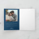 Vintage et simple carte de remerciements mariage avec cadre en arc blanc avec un texte qui dit "amour & merci" dans une police de style rétro avec étoiles en bleu marine. Le message par défaut au verso est modifiable. Une deuxième photo de carré peut être ajoutée au dos de la carte.
