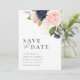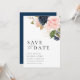 aquarelle moderne bleu marine et floral roux enregistrer la carte mariage date. Le texte et les couleurs peuvent être modifiés.