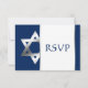 Carte de réponse RSVP de la marine moderne et fausse feuille argent Bar Mitzvah.