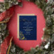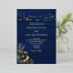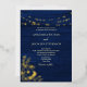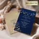 Elégant faire-part de mariage bleu marine avec de vrais motifs floraux en feuille d'or et des lampes à cordes, parfait pour une fête d'hiver ou de soirée. Inclut un code QR moderne pour un accès RSVP aisé. Sophistiquée et pratique, cette invitation donne le ton d'un événement magique.