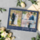 Dites merci à vos invités mariages avec un collage photo où vous pouvez présenter trois de vos belles photos de mariage. Ajoutez vos noms et votre date de mariage dans une police blanche moderne. Le Merci est écrit dans un charmant script manuscrit. Sur le dos, vous pouvez écrire à la main un message de remerciement personnel sur l'arrière - plan légèrement aligné.