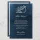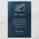 Design mariage élégant et classe. Papier bleu marine aquarelle. Belle coquille avec fleurs. Marine et lettres blanches. Combinaison de polices élégante. Idéal pour les mariages à la plage, les mariages en bord de mer, les mariages côtiers ou les mariages océaniques. Bleu et blanc, design sobre et élégant en font un choix idéal pour une mariage classieuse et semi-formelle.