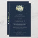 Un menu mariage de trois plats de la marine foncée, avec un bouquet/pochette de baies de neige peintes à la main et d'eucalyptus à l'avant et une couronne à l'arrière. Tout le texte est entièrement modifiable, et les points épars sur l'avant et l'arrière peuvent être supprimés avant de commander si vous le souhaitez. Veuillez consulter cette collection dans mon magasin pour les menus avec des arrangements floraux alternatifs, un nombre différent de cours et dans différentes tailles/couleurs/formes. Coordonner les éléments également disponibles.