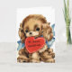 Un mignon chiot tenant une carte de voeux de la Saint-Valentin au coeur rouge à tout amoureux du chiot. Vous pouvez le personnaliser avec votre propre message à l'intérieur de la carte en cliquant sur le bouton "personnaliser" sur le côté droit de cette image de carte. Ce serait un joli rappel de votre amour.