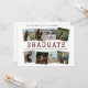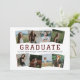 Regardez votre diplômé sous un angle totalement différent ! Le design d'invitation a de l'espace pour huit photos carrés sur le devant, chacune placée à un angle de rakish. Le modèle utilise des photos verticales recadrées aux carrés. Front montre le mot GRADUATE avec une ligne en dessous pour leur nom, l'année de classe et l'école. L'arrière comprend de l'espace pour une photo et un texte de plus pour parler de l'heure de l'école et/ou des plans futurs. Disponible en couleurs scolaires de noir, rouge, orange, vert, bleu, violet, marron et orange brûlé.