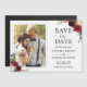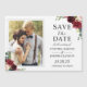 Maroon Rouge Floral Enregistrer la date Photo Carte magnétique