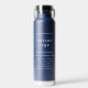 Bouteille d'eau isolée que vous pouvez customiser pour mettre votre nom d'entreprise. Vous pouvez le donner sous forme de cadeau, de cadeau ou de produit promotionnel pour promouvoir votre marque auprès de vos clients ou clients. Vous pouvez également l'inclure dans vos documents de marketing pour faire de la publicité à votre entreprise. Bouteille d'eau personnalisable que vous pouvez utiliser pour développer la sensibilisation de marque. Le design étiquette sur la bouteille est des textes blancs sur l'arrière - plan bleu marine. Pour customiser cette bouteille d'eau, téléchargez votre logo d'entreprise, tapez votre nom d'entreprise ou d'entreprise, votre adresse, votre numéro de téléphone, votre courriel et votre site Web ou page de médias sociaux. Après avoir téléchargé le logo et tapé des textes, veuillez vérifier l'apparence sur les côtés avant et arrière. Si l'apparence vous plaît, vous pouvez passer votre commande maintenant. Si vous avez besoin de redimensionner et déplacer le logo et les textes pour tenir sur cette bouteille ou sur d'autres tailles et styles que vous choisirez, s'il vous plaît changer dans l'outil de conception. Vous pouvez également effectuer d'autres modifications en fonction de l'apparence que vous préférez dans l'outil de conception, comme changer la couleur arrière - plan, la couleur de police et le style de police.