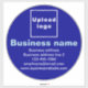 Grand sticker vinyle rond que vous pouvez customiser pour mettre votre nom d'entreprise et d'autres informations de votre entreprise. Affichez-le comme matériel marketing pour annoncer votre entreprise ou pour promouvoir votre marque auprès de clients ou de clients. Vous pouvez également l'utiliser comme matériau d'emballage pour les grandes boîtes. Autocollant vinyle personnalisable que vous pouvez utiliser pour construire la sensibilisation de marque. Les couleurs design sont des textes bleu clair et blanc sur arrière - plan bleu. Pour customiser cet autocollant, téléchargez votre logo d'entreprise, tapez votre nom d'entreprise, votre adresse, votre numéro de téléphone, votre courriel et votre site Web ou votre page de médias sociaux d'affaires. Veuillez vérifier l'apparence après avoir téléchargé le logo et tapé des textes. Si l'apparence vous plaît, vous pouvez passer votre commande maintenant. Si vous avez besoin de redimensionner et déplacer le logo et les textes pour tenir sur cet autocollant ou sur la taille que vous choisirez, s'il vous plaît changer dans l'outil de conception. Vous pouvez également modifier la couleur arrière - plan, la couleur de police et le style de police dans l'outil de conception.