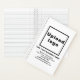 Carnet que vous utiliserez pour écrire vos dossiers, transactions, informations, notes, procès-verbaux de réunion, idées, rappels ou utiliser comme journal d'affaires. Carnet que vous pouvez customiser la couverture pour y mettre votre nom d'entreprise et d'autres informations de votre entreprise. Customisez et utilisez-le pour sensibiliser la marque. Un service de bureau et d'école que vous pouvez inclure dans vos produits promotionnels, cadeaux ou cadeaux offerts à vos clients pour promouvoir votre marque. Customisez et utilisez-le comme une de vos stratégies marketing pour faire de la publicité à votre entreprise. Les couleurs design de la couverture sont des textes noirs sur arrière - plan blanc. Pour customiser la couverture de ce carnet, téléchargez votre logo d'entreprise, tapez votre nom d'entreprise, votre adresse, votre numéro de téléphone, votre adresse électronique et votre site Web ou votre page de médias sociaux. Après avoir téléchargé le logo et tapé des textes, veuillez vérifier l'apparence. Si l'apparence vous plaît, vous pouvez passer votre commande maintenant. Si vous avez besoin de redimensionner et déplacer le logo et les textes pour s'adapter à la couverture de ce carnet, s'il vous plaît changer dans l'outil de conception. Vous pouvez également effectuer d'autres modifications dans l'outil de conception en fonction de l'apparence de la couverture de ce carnet que vous préférez, comme changer la couleur arrière - plan, la couleur de police et le style de police.