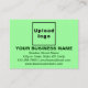 Carte de forme rectangle de petite taille que vous pouvez customiser pour mettre votre nom d'entreprise et d'autres informations de votre entreprise. Vous pouvez l'utiliser comme matériel de marketing pour annoncer votre entreprise ou pour promouvoir votre marque auprès de clients ou de clients. Petite carte personnalisable que vous pouvez utiliser pour développer la sensibilisation de marque. Vous pouvez également l'utiliser comme accessoire de votre matériel d'emballage de produit ou comme insert d'emballage. Les couleurs design sont des textes vert foncé sur arrière - plan vert clair. Pour customiser cette carte, téléchargez votre logo d'entreprise, tapez votre nom d'entreprise, votre adresse, votre numéro de téléphone, votre adresse électronique et votre site Web ou votre page de médias sociaux. Après avoir téléchargé le logo et tapé des textes, veuillez vérifier l'apparence sur les côtés avant et arrière. Si l'apparence vous plaît, vous pouvez passer votre commande maintenant. Si vous avez besoin de redimensionner et déplacer le logo et les textes pour s'adapter à cette carte, s'il vous plaît changer dans l'outil de conception. Vous pouvez également effectuer d'autres modifications dans l'outil de conception en fonction de l'apparence de cette carte que vous préférez, comme changer la couleur arrière - plan, la couleur de police et le style de police.