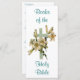Une belle carte qui est parfaite à utiliser comme signet pour votre bible. Le devant est recouvert d'une croix bleue recouverte de fleurs. Le dos a les livres du nouveau et de l'ancien témoignage.