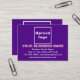 Carte de forme rectangle de petite taille que vous pouvez customiser pour mettre votre nom d'entreprise et d'autres informations de votre entreprise. Vous pouvez l'utiliser comme matériel de marketing pour annoncer votre entreprise ou pour promouvoir votre marque auprès de clients ou de clients. Petite carte personnalisable que vous pouvez utiliser pour développer la sensibilisation de marque. Vous pouvez également l'utiliser comme accessoire de votre matériel d'emballage de produit ou comme insert d'emballage. Les couleurs design sont des textes rose et blanc sur arrière - plan violet. Pour customiser cette carte, téléchargez votre logo d'entreprise, tapez votre nom d'entreprise, votre adresse, votre numéro de téléphone, votre adresse électronique et votre site Web ou votre page de médias sociaux. Après avoir téléchargé le logo et tapé des textes, veuillez vérifier l'apparence sur les côtés avant et arrière. Si l'apparence vous plaît, vous pouvez passer votre commande maintenant. Si vous avez besoin de redimensionner et déplacer le logo et les textes pour s'adapter à cette carte, s'il vous plaît changer dans l'outil de conception. Vous pouvez également effectuer d'autres modifications dans l'outil de conception en fonction de l'apparence de cette carte que vous préférez, comme changer la couleur arrière - plan, la couleur de police et le style de police.