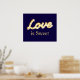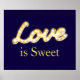 Vintage marquee lumières accent cet amour est une affiche douce sur un arrière - plan bleu foncé, faisant la décoration parfaite pour la table dessert mariage. Faites défiler vers le bas pour voir la collection mariage de coordination.
