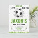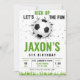 Célébrez le jour spécial de votre petit avec notre modèle de carte d'invitation d'anniversaire de football entièrement personnalisable. Conçu avec un thème de football classique en blanc et vert, comme un terrain de football, cette invitation fera ressortir votre fête. Téléchargez maintenant pour créer l'invitation parfaite sur le thème du football pour la célébration prochaine de votre enfant.