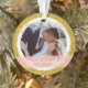 Splashy mais élégant "Marrily ever" (que vous pouvez changer à "Merrily ever" si vous le souhaitez) Notre premier Noël en tant que Mr et Mme. [Nom de famille] ornement de Noël photo personnalisée pour les jeunes mariés, avec typographie moderne cursive / lettrage à la main sur un élégant groupe semi-transparent rose pêche, un cadre de flocons de neige blancs et argentés et de petites étoiles, et un autre cadre de parties scintillant dorée simulé. Assurez-vous de personnaliser au moins les deux photos (avant et arrière), le nom de famille sur le devant, les prénoms et l'année sur le dos.
