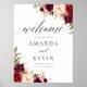 Marsala burgundy Floral Mariage Affiche de bienven