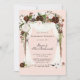 Le design présente un élément floral de couleur imprimée dans les tons marsala et rose vif superposant une texture de papier kraft rose clair avec dessus à baldaquin blanc et écriture de calligraphie ou de type. Idéal pour vos célébrations mariages !