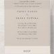 Cette faire-part de mariage respire l'élégance classique avec son subtil monogramme calligraphique classique. Le monogramme, avec les initiales du couple heureux, est élégamment affiché sur le devant de l'invitation. L'invitation elle-même est fabriquée à partir de cartons de haute qualité et dispose d'une police intemporelle et d'un design simple, mais sophistiqué. La typographie traditionnelle ajoute une touche d'élégance et ajoute à l'ensemble de l'atmosphère classique de l'invitation.