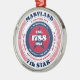 Montrez votre fierté d'Etat à cette période de fêtes avec cet ornement de Noël unique dédié au Maryland, le 7ème Etat. Il a des couleurs patriotiques rouges, blanches et bleues avec un design de typographie circulaire sur un arrière - plan blanc. Le texte comprend des faits sur l'État, tels que son nom, sa capitale, son abréviation d'État, sa région, son fuseau horaire, ses coordonnées géographiques, l'année de sa création et le nom de son résident. C'est un grand cadeau pour ceux qui souhaitent célébrer leur état ou pour ceux qui se sentent nostalgiques de leur état d'origine.