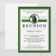 Personnalisez votre fête de réunion en commençant par ces invitations classe dans vos couleurs scolaires de vert et blanc et modèle pour placer votre mascotte de l'école avant et centre.