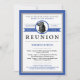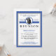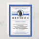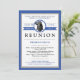 Personnalisez votre fête de réunion en commençant par ces invitations classe dans vos couleurs scolaires de bleu et blanc et modèle pour placer votre mascotte de l'école avant et centre.