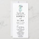 Ce programme de mariage est le mélange parfait entre rustique et élégant. L'arrière - plan blanc et la simple police en bloc noir lui donnent un aspect classique, tandis que la jarre rustique en maçon remplie de fleurs sauvages et de verdure verts, violets, bleus et blancs apporte une touche de charme champêtre. Ce design est parfait pour les couples à la recherche de quelque chose de simple, mais romantique et rustique. La première du programme comprend les noms des couples, la date du mariage, la ville et l'état, ainsi que l'ordre de cérémonie. Le verso du programme indique la fête de mariage, en s'assurant que tout le monde est bien présenté aux invités. Le texte principal est dans une simple police de caractères noirs, facile à lire, tandis que les mots Welcome, Ceremony et Wedding Party sont écrits dans une jolie police de caractères noirs qui ajoute une touche d'élégance au design. Les noms des couples sont clairement affichés dans une police simple en noir gras avec espacement des lettres pour les faire ressortir. Cela ajoute une touche personnelle au programme et indique clairement qui est le mariage. Que vous ayez un mariage de plein air rustique, une petite cérémonie intime ou une grande affaire, ce programme de mariage sera l'ajout parfait à votre journée spéciale.