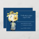 Carte de réponse — Parfait pour un mariage de style champêtre ou peut-être que vous aimez juste Mason Jars! Mason Jar accroché à un crochet rempli de fleurs sauvages de pays. Un arrière - plan BLEU MARINE avec la jarre Mason pendante avec billes jaunes, tournesols et marguerites blanches sauvages. Si vous avez des questions sur ce design ou si vous voulez un changement de couleur, envoyez-moi un courriel à paula@labellarue.com Vérifiez également que les cartes d'INVITATION PRINCIPALES, de RÉCEPTION et d'INVITATION correspondent!