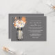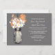 Parfait pour un mariage de style champêtre ou peut-être que vous aimez juste Mason Jars! Mason Jar accroché à un crochet rempli de fleurs sauvages de pays. Un arrière - plan Cool de Charcoal Grey contre la Mason Jar pendante et des fleurs sauvages dans les couleurs de marguerites orange et blanc. Si vous avez des questions sur ce design ou si vous voulez un changement de couleur, envoyez-moi un courriel à paula@labellarue.com Vérifiez également que les cartes RSVP, RECEPTION et GUEST SEATING correspondent!