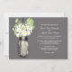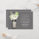 Parfait pour un mariage de style champêtre ou peut-être que vous aimez juste Mason Jars! Mason Jar accroché à un crochet rempli de fleurs sauvages de pays. Un arrière - plan Cool de Charcoal Grey contre la Mason Jar pendante et des fleurs sauvages aux couleurs de marguerites vert clair et blanc. Si vous avez des questions sur ce design ou si vous voulez un changement de couleur, envoyez-moi un courriel à paula@labellarue.com Vérifiez également que les cartes RSVP, RECEPTION et GUEST SEATING correspondent!