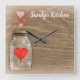Mason Jar et les coeurs Horloge de cuisine personn