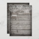 Rustic Country Mason Jar Lace Grange Mariage en bois Invitations pour un faire-part de mariage élégant mais rustique.  L'arrière - plan est une grange en bois gris avec des motifs suspendus de jarres de maçon et des dentelles imprimées en haut.  Ils sont parfaits pour les mariages de granges et les mariages campagnards.