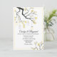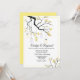 Faire-part de mariage design en blanc et jaune, avec des graphiques d'une branche d'arbre fleurie avec des lumières de mâchoires suspendues. Personnalisez tout le texte pour répondre à vos besoins mariages. Des produits correspondants sont disponibles.