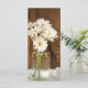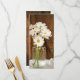 Customisez l'élégant bocal Mason et le menu Mariage White Daisies Country Barn avec les détails du repas que vous pourrez servir à votre repas informel à la ferme style mariage dîner réception, déjeuner de douche nuptiale ou brunch mariage. Ce charmant menu rustique chic et personnalisé propose une numériquement photographie florale rehaussée d'un bocal en verre rempli de fleurs de marguerites blanches et d'un arrière - plan en bois de grange brun patiné. Idéal pour votre fête de grange décontractée.