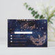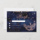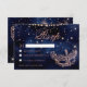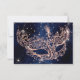 Masque de masquerade RSVP or rose pailleté avec aquarelle bleu foncé, un masque de mardi gras luxueux dessiné à la main avec des diamants or rose pailletés confettis. Parfait pour un anniversaire, un bal masqué ou un mariage.