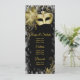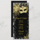 Menu et programme de fête mascarade avec un beau masque mascarade or sur un joli arrière - plan de livre noir, or et blanc. Ces menus ou programmes de fête mascarade sont facilement customisés avec le texte de votre choix sur le devant et le dos dans le style de police que vous préférez.
